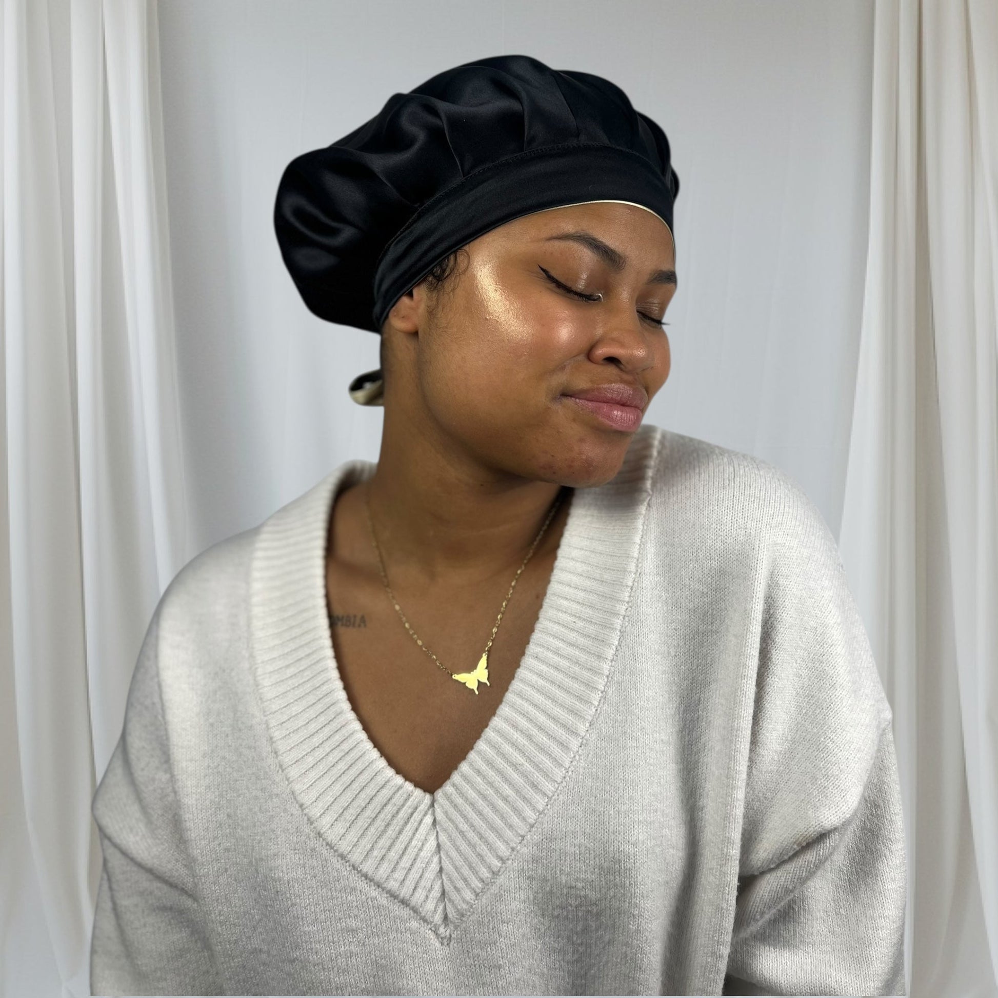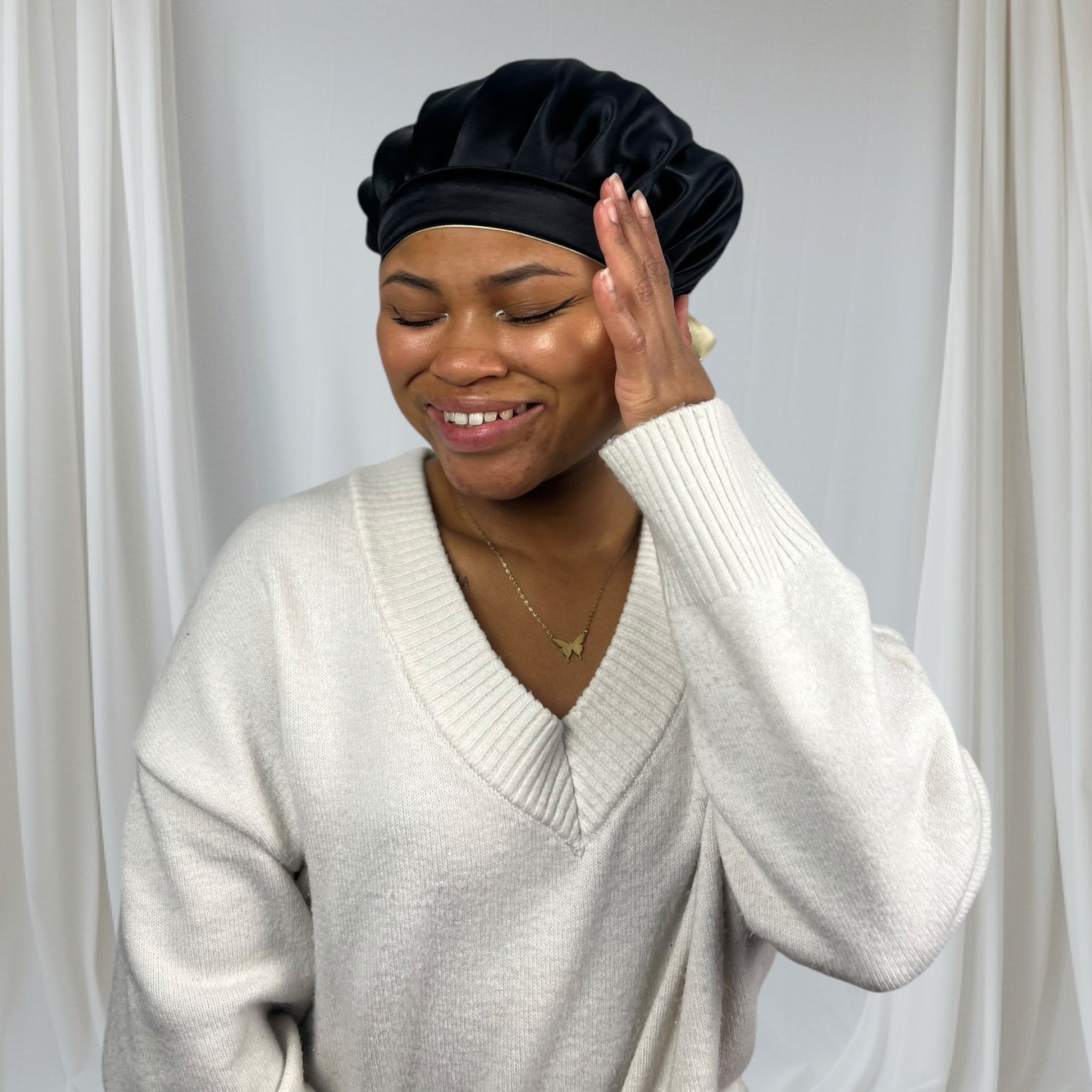 The Silky Hug – Le bonnet de nuit en pure soie de mûrier pour des cheveux protégés pendant votre sommeil